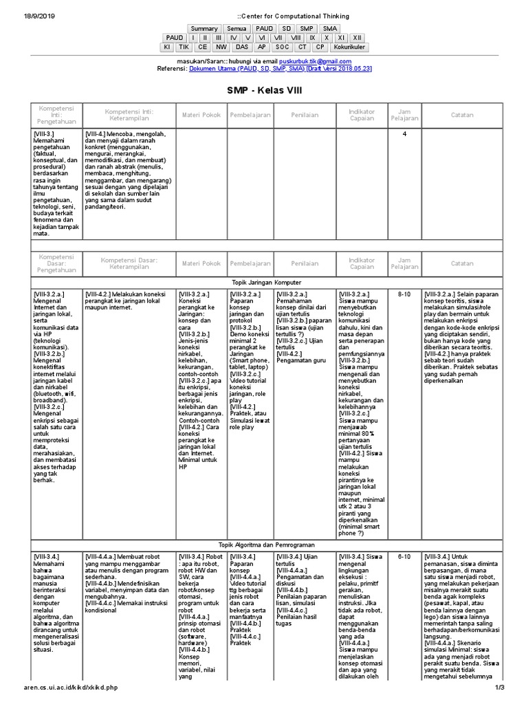 persoalan pola, dan algoritmik. Computational Tingkat SMP dibentuk sendiri oleh siswa