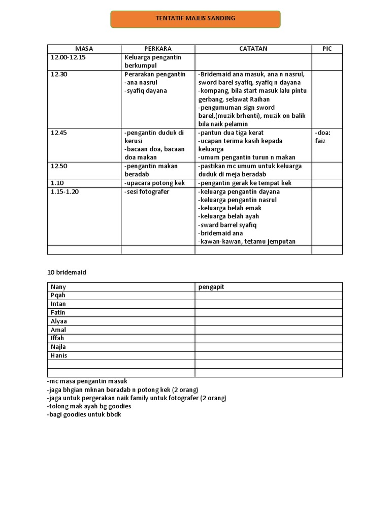 12.50 -pengantin makan -pastikan mc umum untuk keluarga