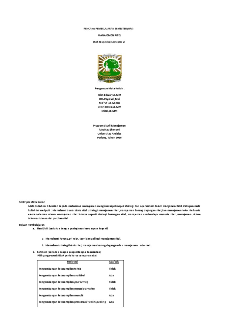 RENCANA PEMBELAJARAN SEMESTER (RPS)
