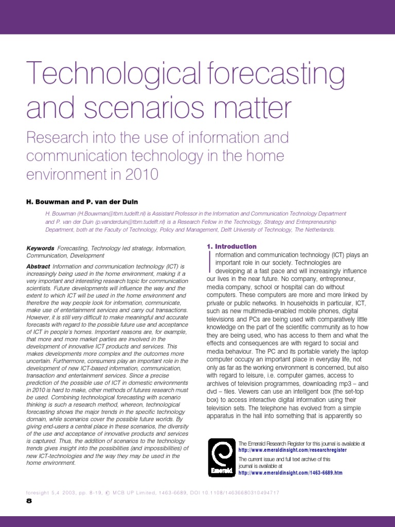 be used. Combining technological forecasting with scenario box) to access interactive digital information using their