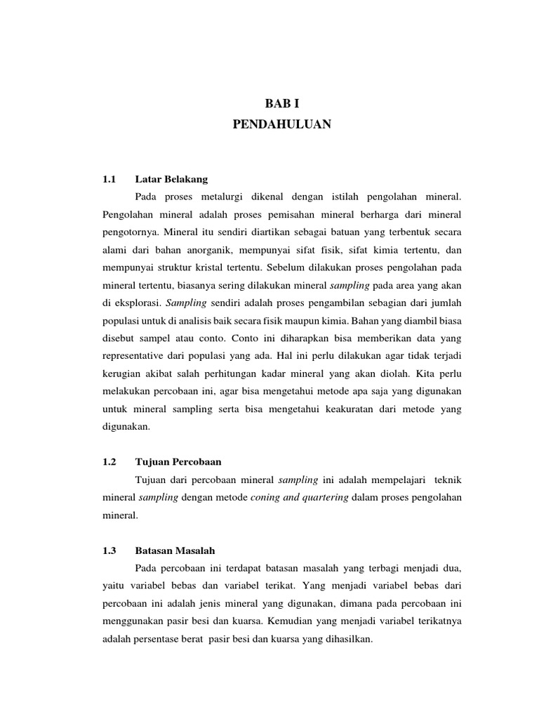 saat melakukan proses sampling. Proses pengolahan mineral sendiri berbeda