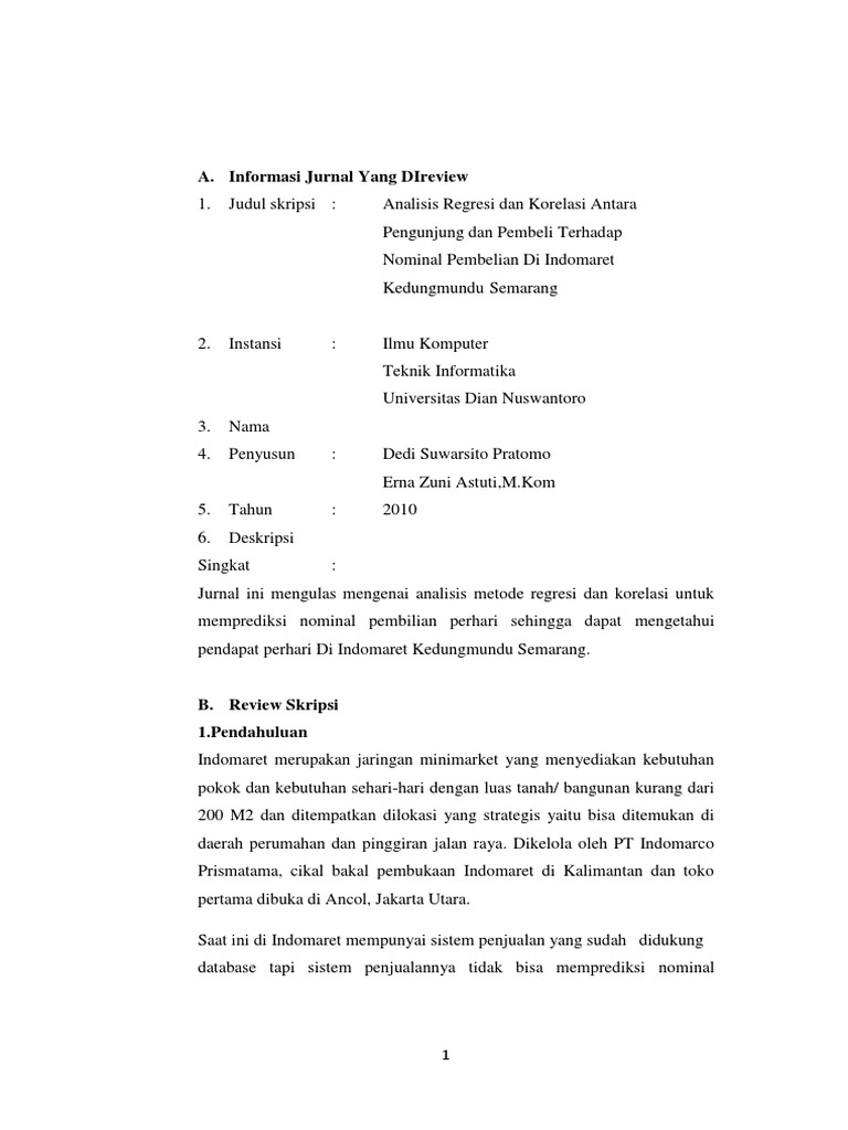 1. Judul skripsi : Analisis Regresi dan Korelasi Antara
