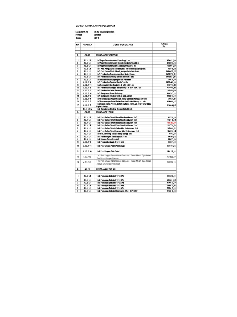 Daftar Harga Pekerjaan Konstruksi 2017