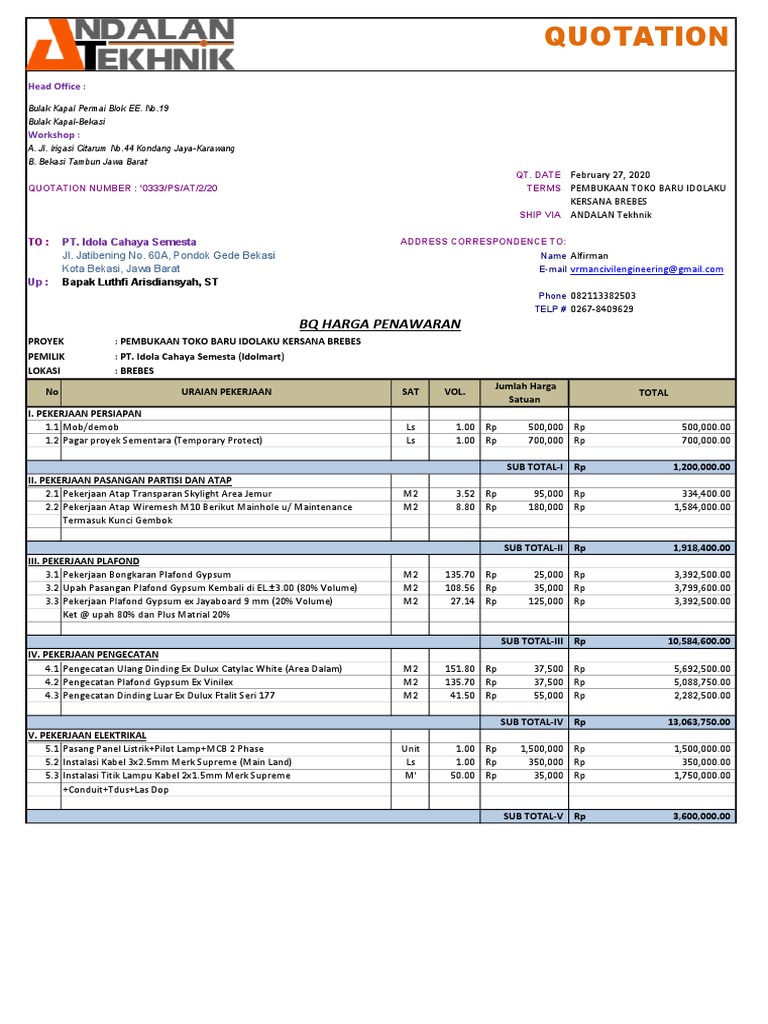 QUOTATION NUMBER : '0333/PS/AT/2/20 TERMS PEMBUKAAN TOKO BARU IDOLAKU