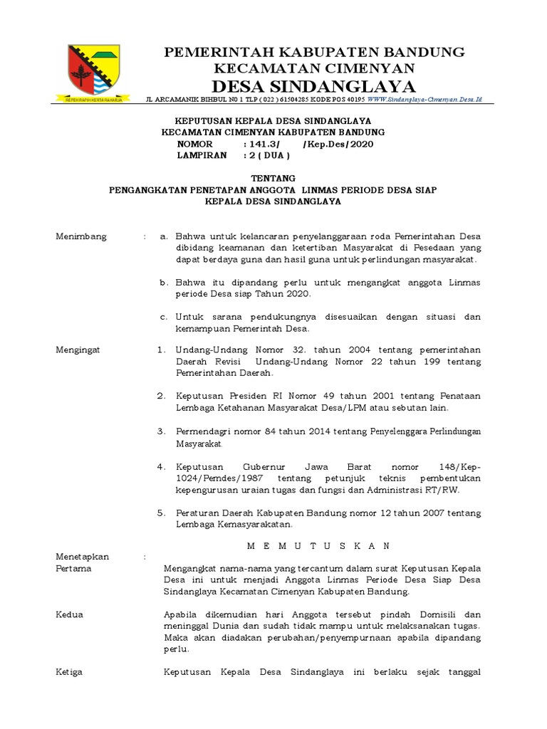 LAMPIRAN : SURAT KEPUTUSAN KEPALA DESA SINDANGLAYA