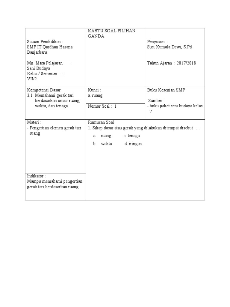 waktu, dan tenaga Nomor Soal : 5 - buku paket seni budaya