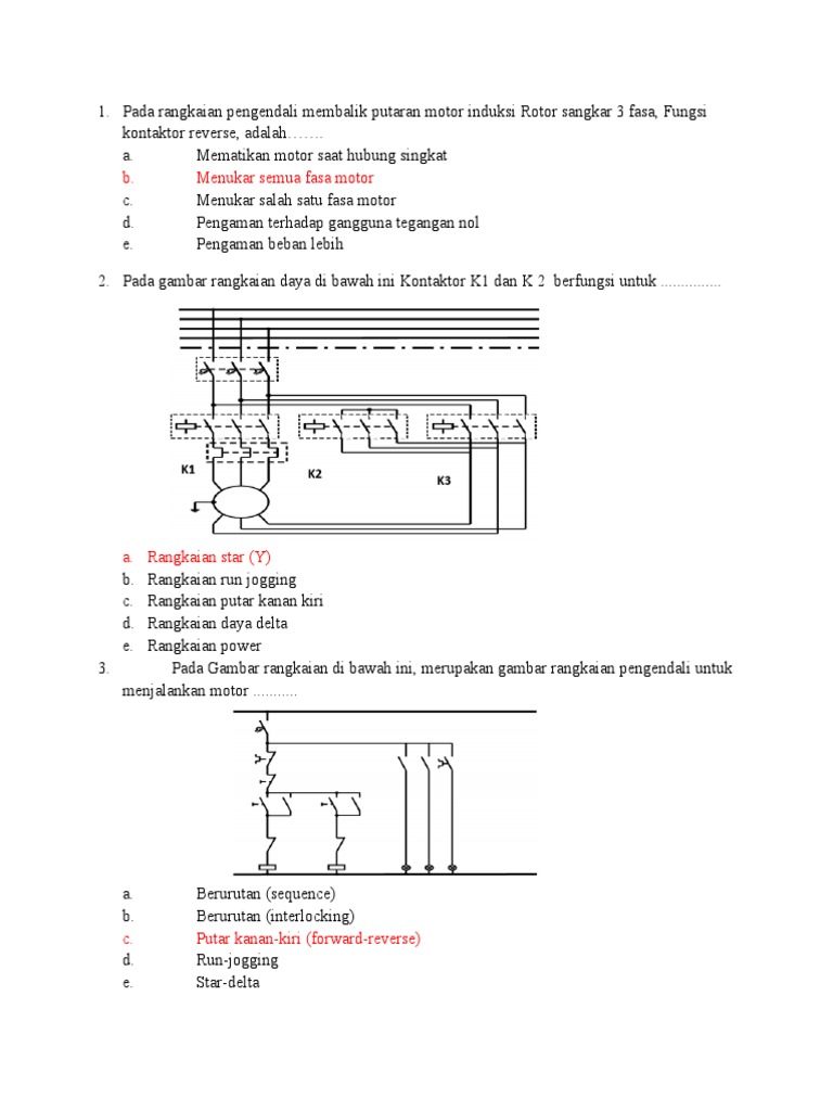 2. Pada gambar rangkaian daya di bawah ini Kontaktor K1 dan K 2 berfungsi untuk ...............
