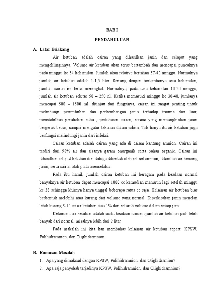Pada makalah ini kita kan membahas kelainan air ketuban sepert: KPSW,