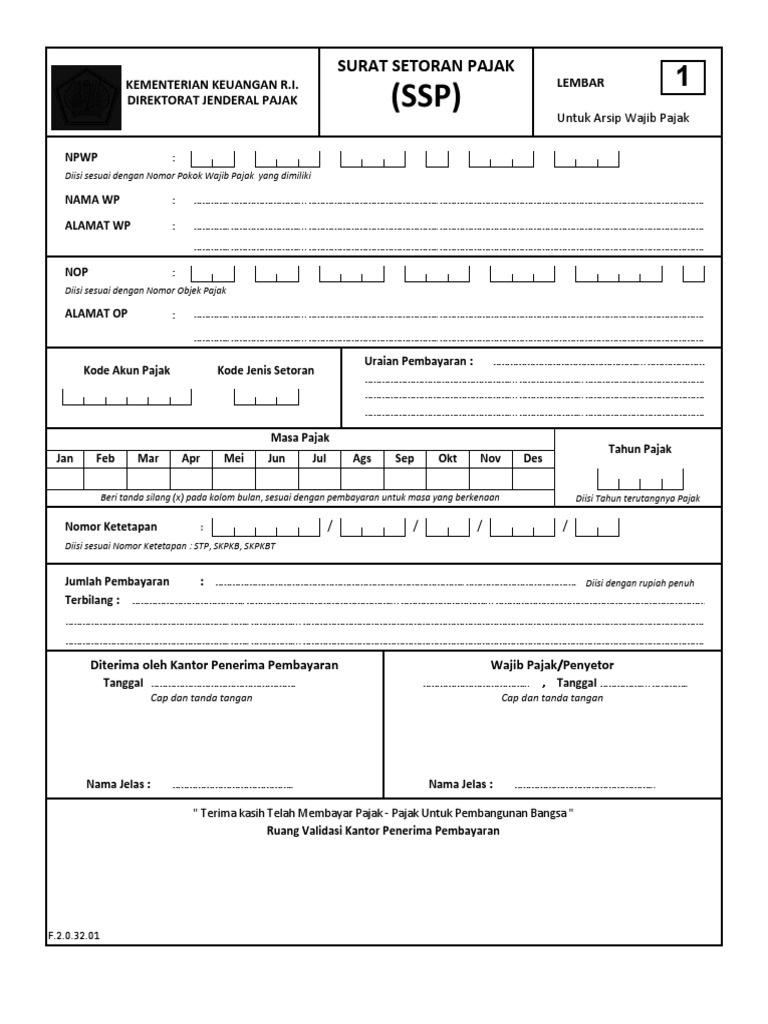 DIREKTORAT JENDERAL PAJAK (SSP) Untuk Arsip Wajib Pajak