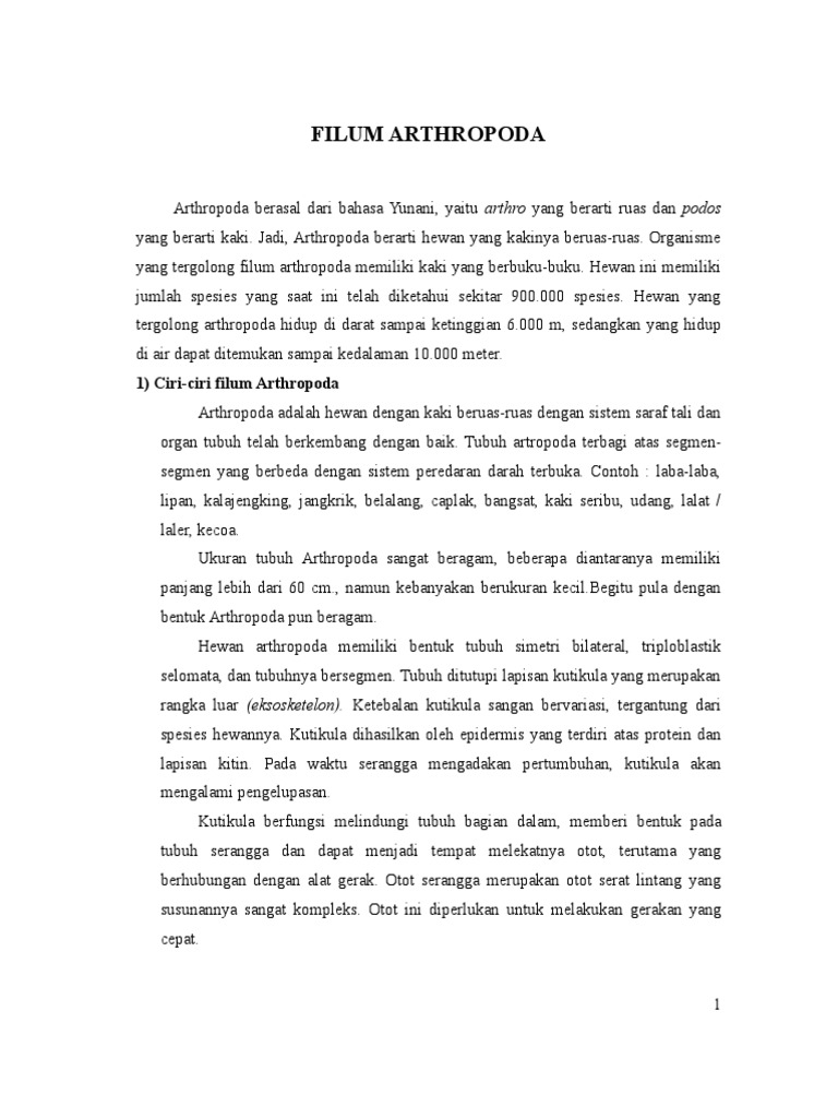 yang tergolong filum arthropoda memiliki kaki yang berbuku-buku. Hewan ini memiliki