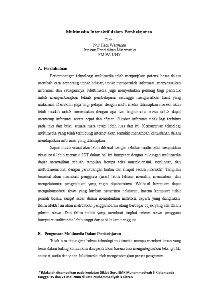 B. Pengunaan Multimedia Dalam Pembelajaran