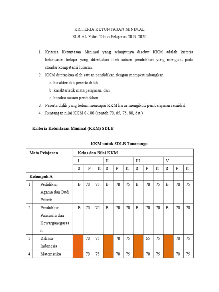 Kriteria Ketuntasan Minimal (KKM) SMPLB