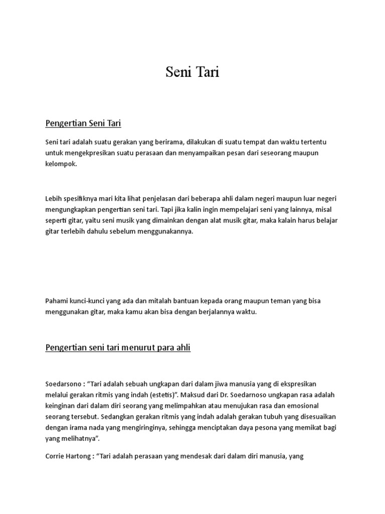 mengungkapkan pengertian seni tari. Tapi jika kalin ingin mempelajari seni yang lainnya, misal
