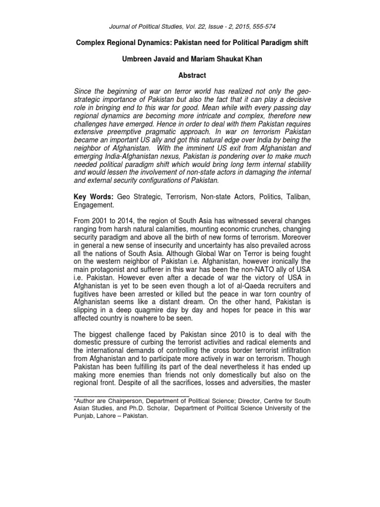 Asian Studies, and Ph.D. Scholar, Department of Political Science University of the