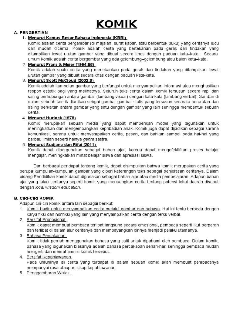 1. Komik hadir untuk menyampaikan cerita melalui gambar dan bahasa . Hal ini tentu berbeda dengan