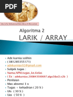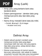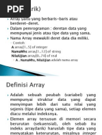 Array atau Larik adalah sebuah tipe data bentukan yang terstruktur yang terdiri dari