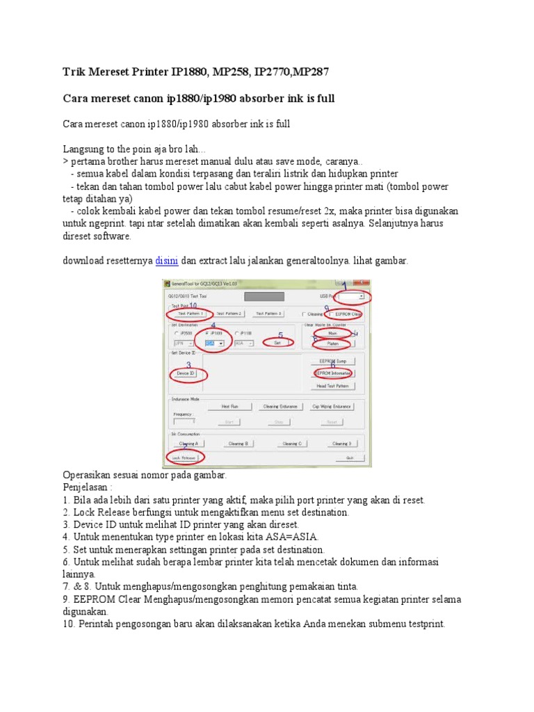 Cara mereset canon ip1880/ip1980 absorber ink is full