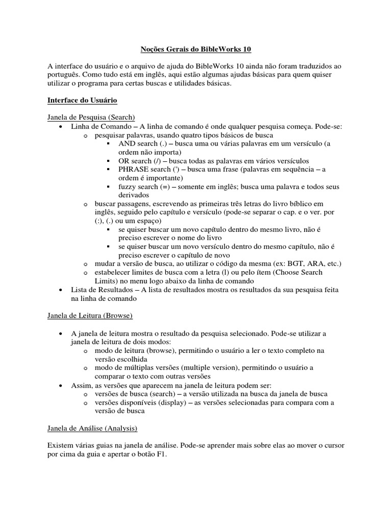 A interface do usuário e o arquivo de ajuda do BibleWorks 10 ainda não foram traduzidos ao