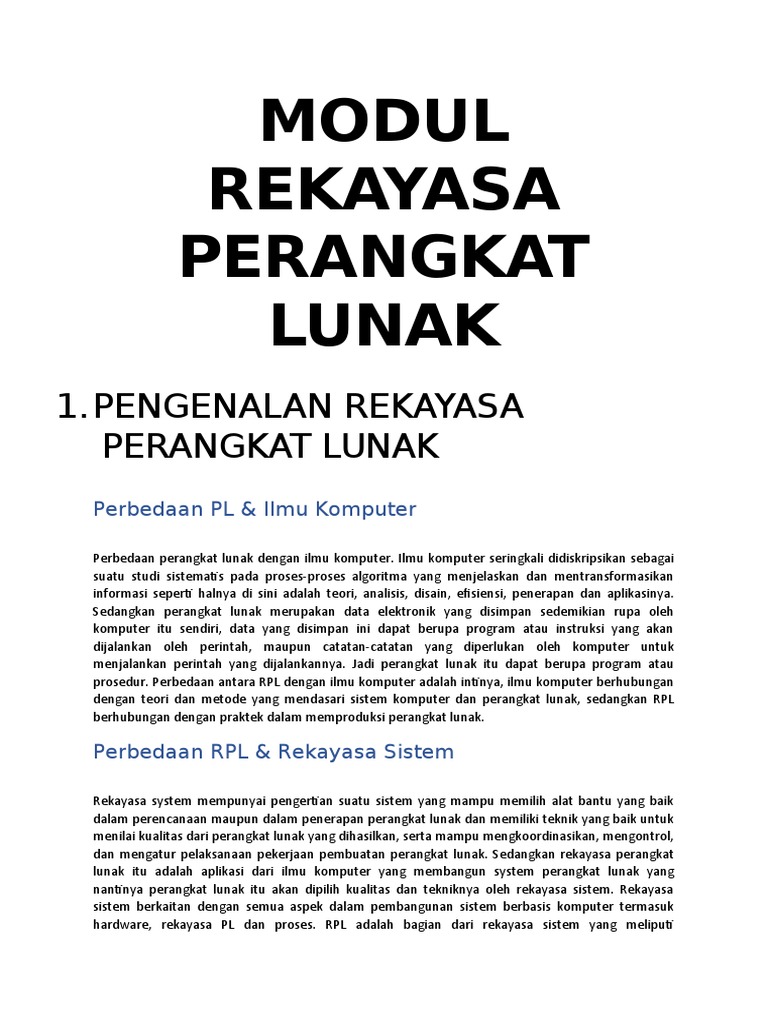 hardware, rekayasa PL dan proses. RPL adalah bagian dari rekayasa sistem yang meliputi