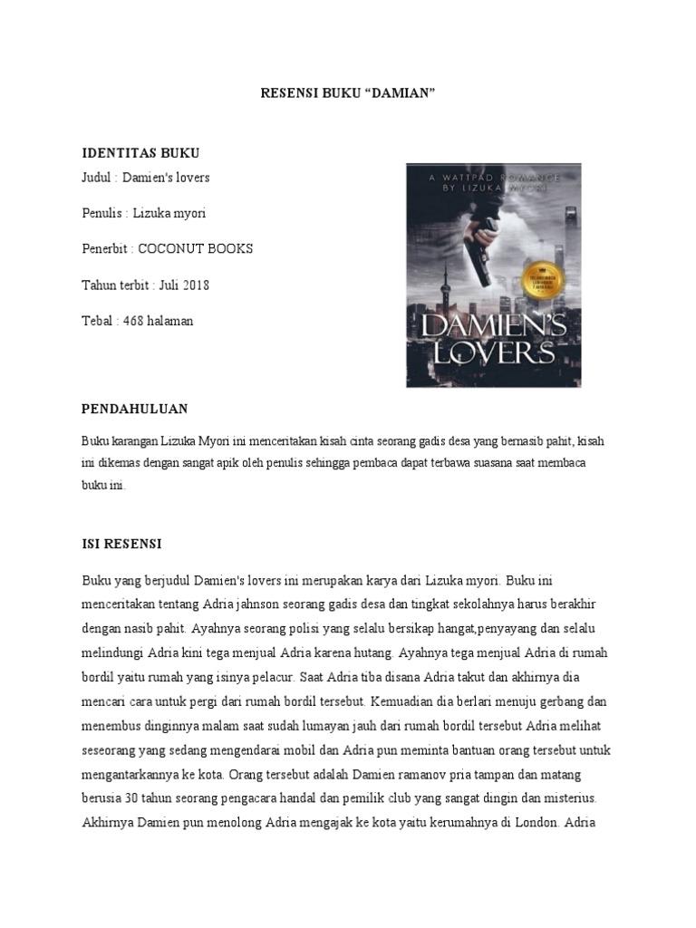 Buku yang berjudul Damien's lovers ini merupakan karya dari Lizuka myori. Buku ini