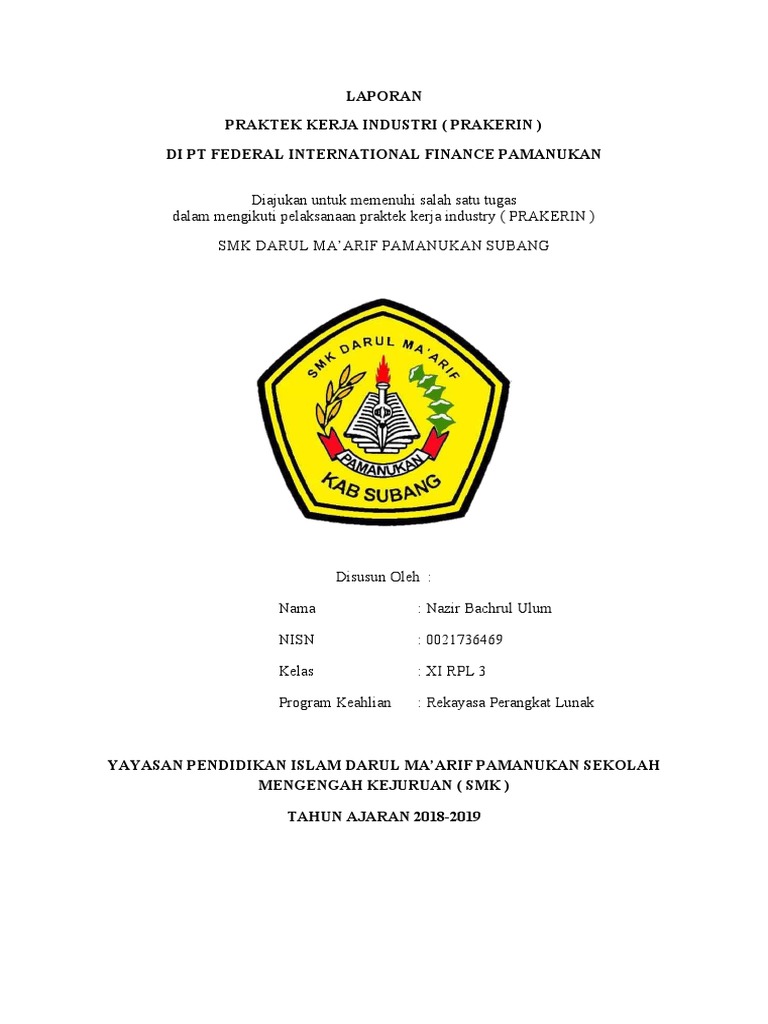 nya saya dapat menyelesaikan Laporan Praktek Kerja Industri ( PRAKERIN ) yang telah