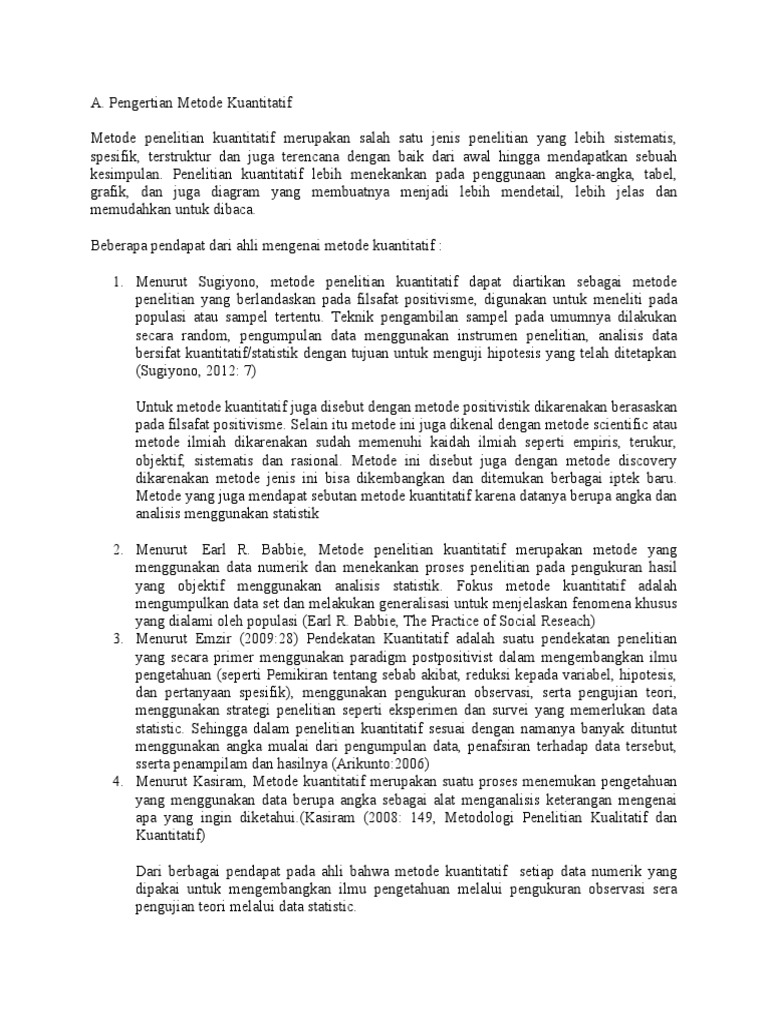 2. Menurut Earl R. Babbie, Metode penelitian kuantitatif merupakan metode yang