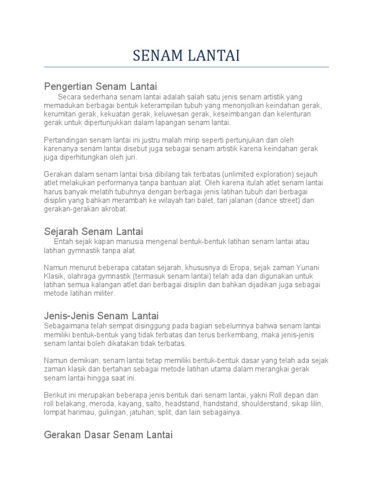 Secara sederhana senam lantai adalah salah satu jenis senam artistik yang