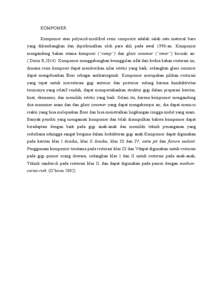mengandung bahan utama komposit (“comp”) dan glass ionomer (“omer”) kecuali air.