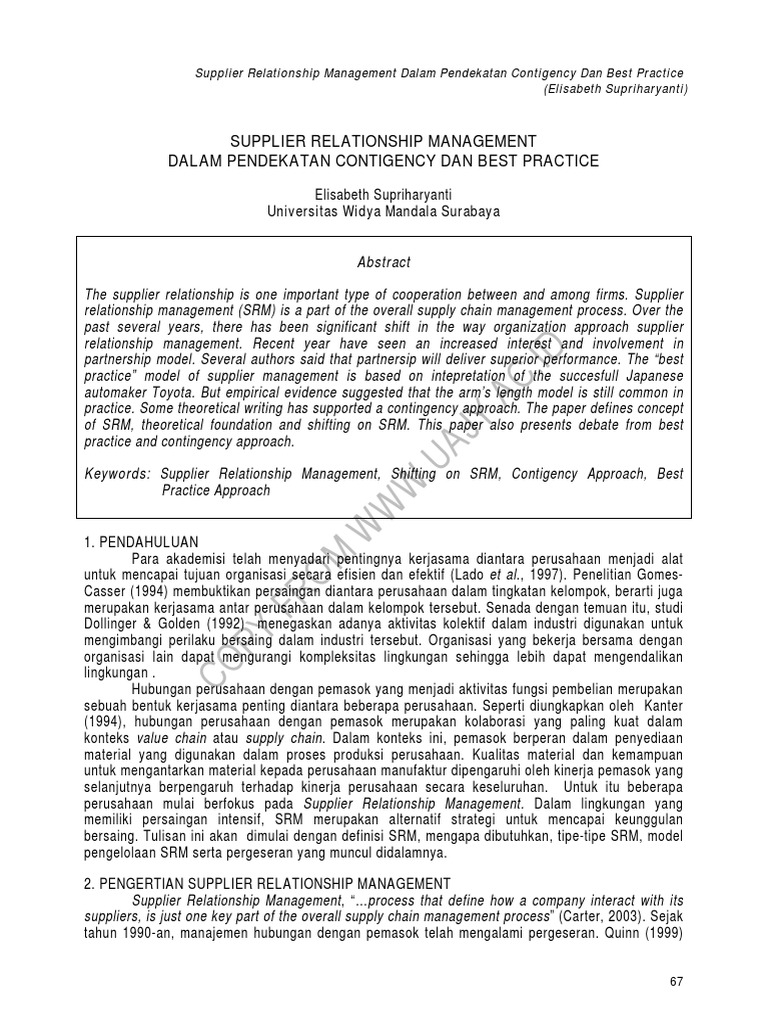 Supplier Relationship Management Dalam Pendekatan Contigency Dan Best Practice