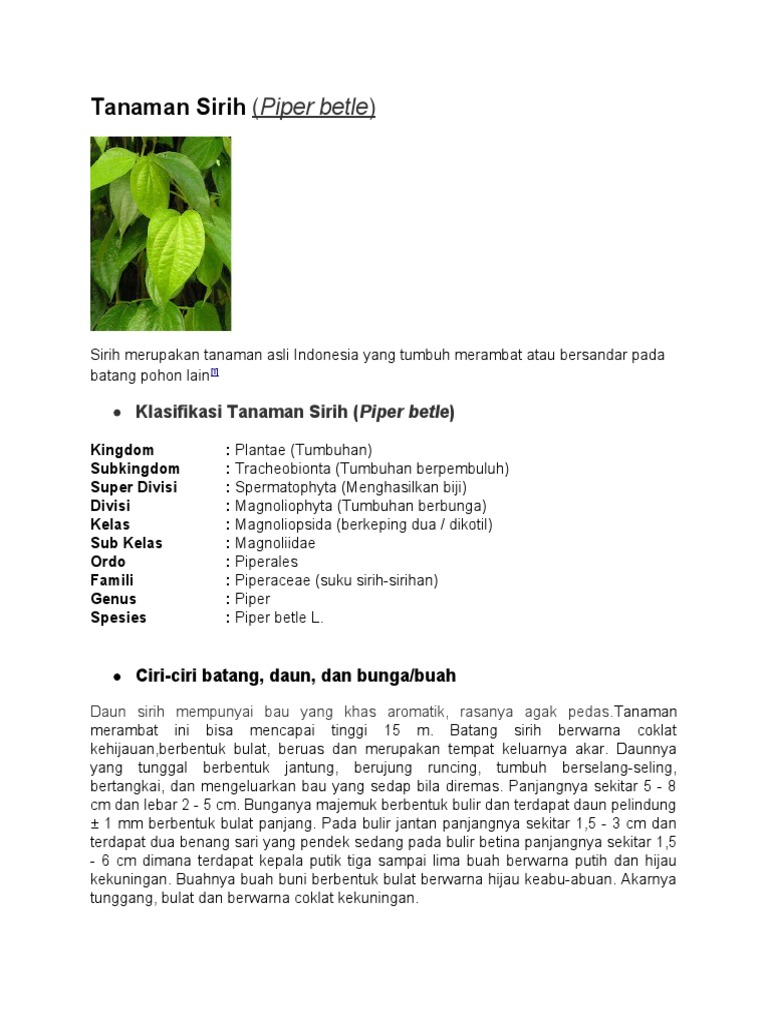 Sirih merupakan tanaman asli Indonesia yang tumbuh merambat atau bersandar pada