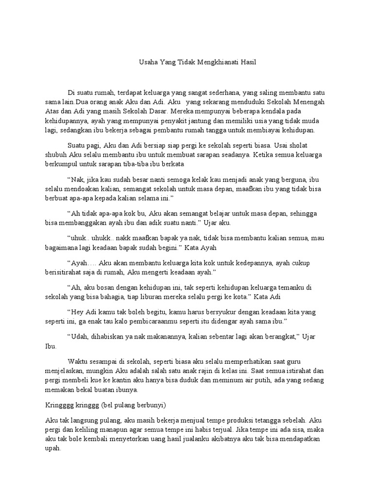 berjas tadi. Keesokannya aku tak perlu repot-repot jalan kaki untuk menjual tempe. Usai