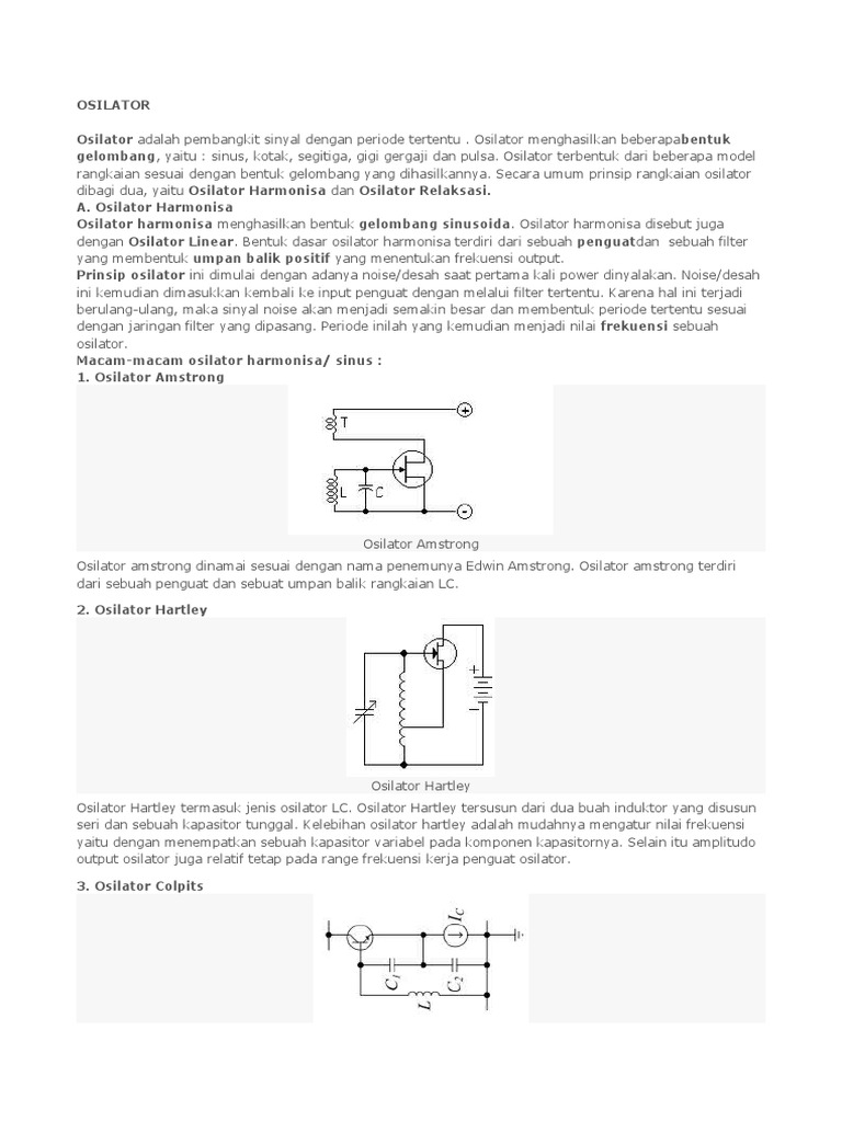 dengan Osilator Linear. Bentuk dasar osilator harmonisa terdiri dari sebuah penguatdan sebuah filter