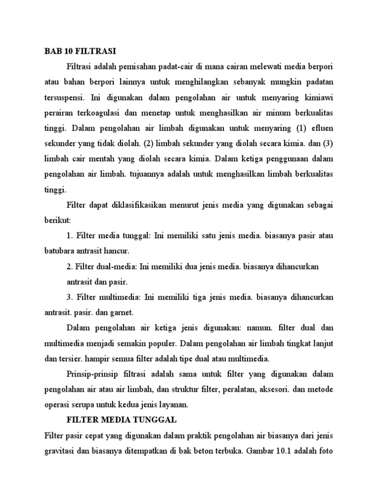 pengolahan air limbah adalah sebagai berikut (EPA. 1975): (l) laju filtrasi dari 2