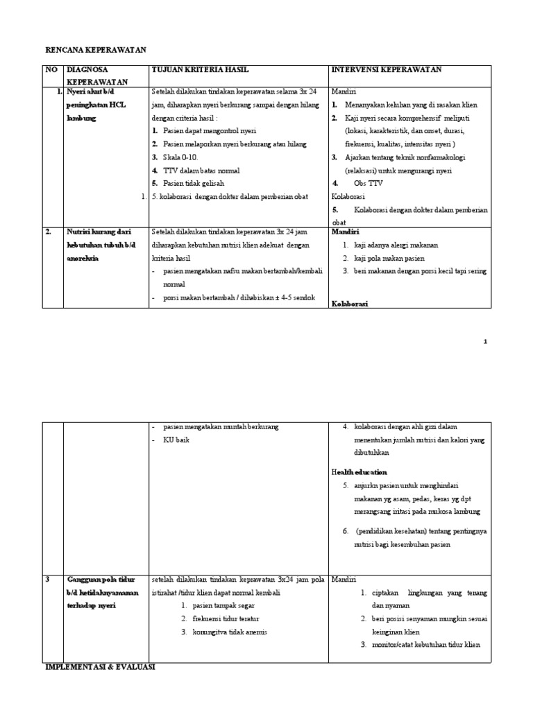 R : Nyeri di epigastrium P : Lanjutkan Intervensi keperawatan (1,2,3,4)