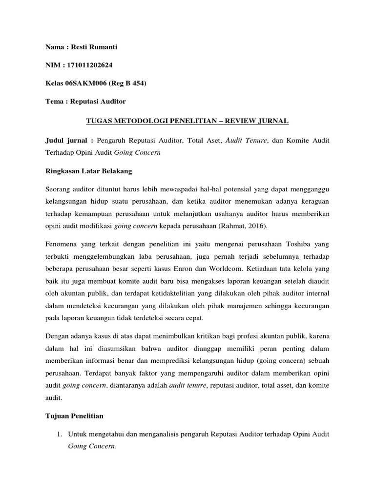 going concern. Terlepas auditor tersebut berafiliasi dengan The Big 4 maupun tidak, mereka