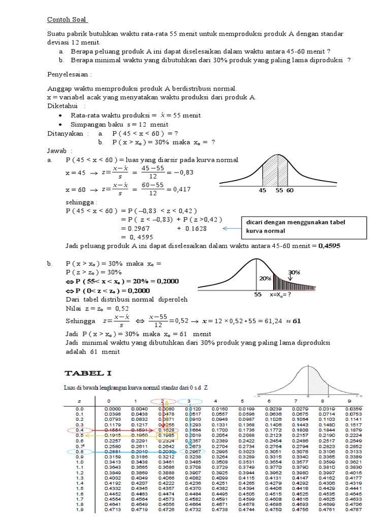 Jadi peluang produk A ini dapat diselesaikan dalam waktu antara 45-60 menit = 0,4595