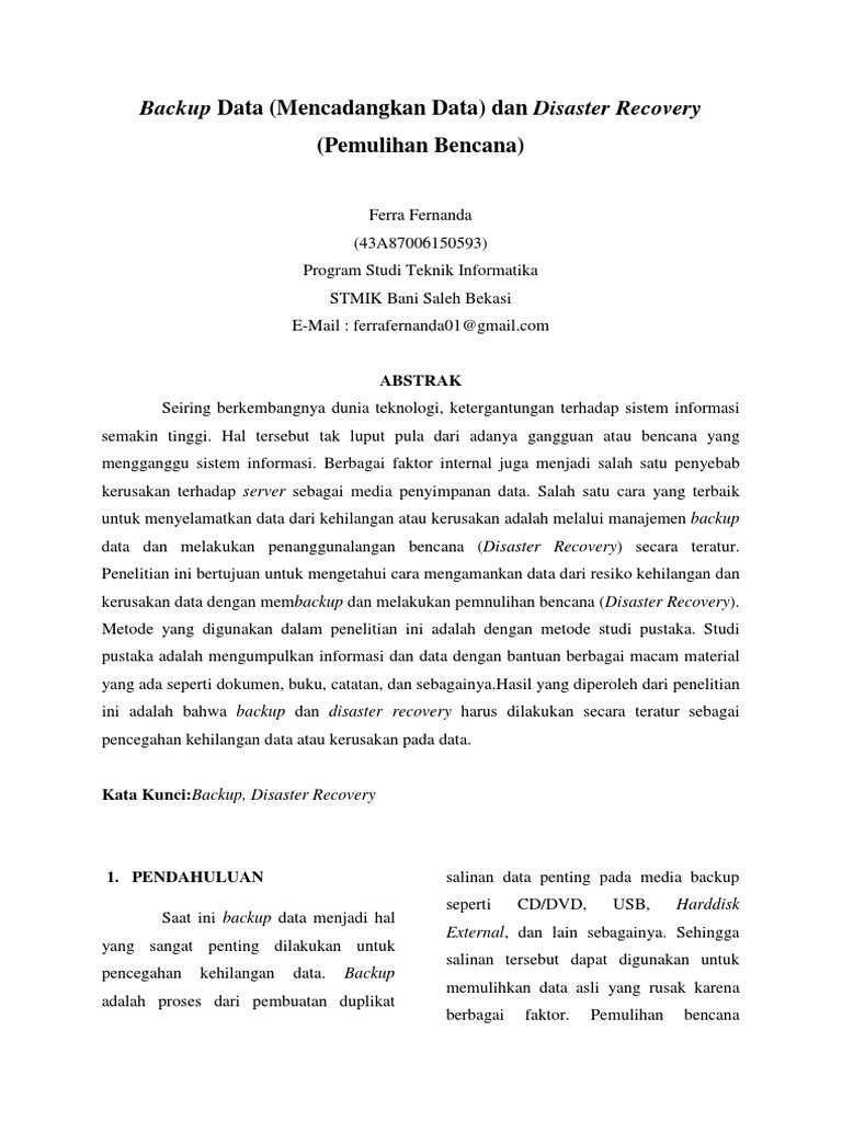 Kata Kunci:Backup, Disaster Recovery
