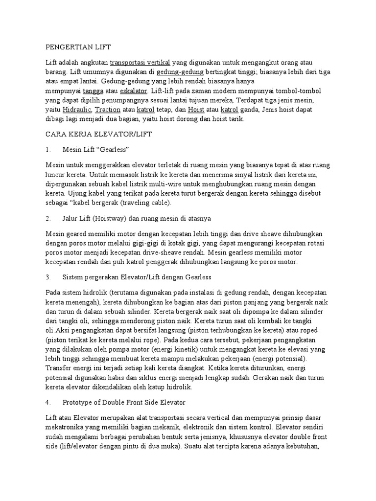Lift atau Elevator merupakan alat transportasi secara vertical dan mempunyai prinsip dasar