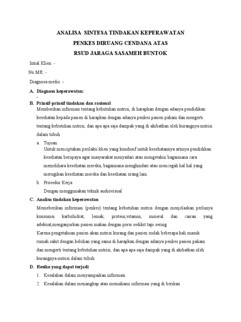ANALISA SINTESA TINDAKAN KEPERAWATAN