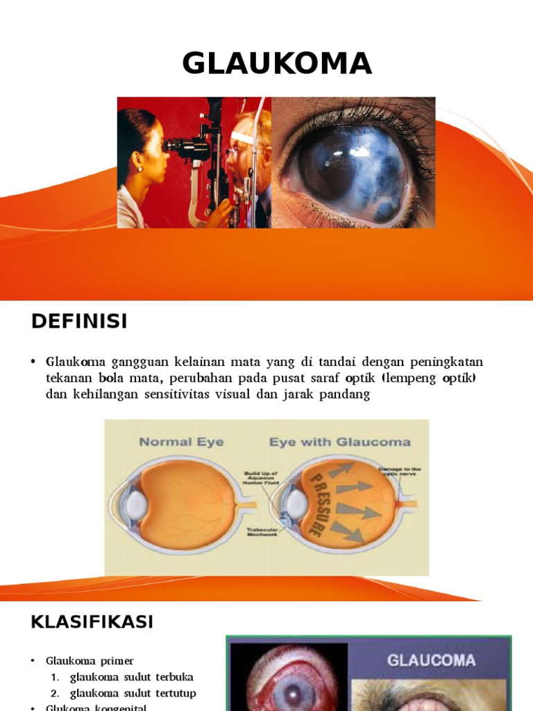 • Glaukoma gangguan kelainan mata yang di tandai dengan peningkatan