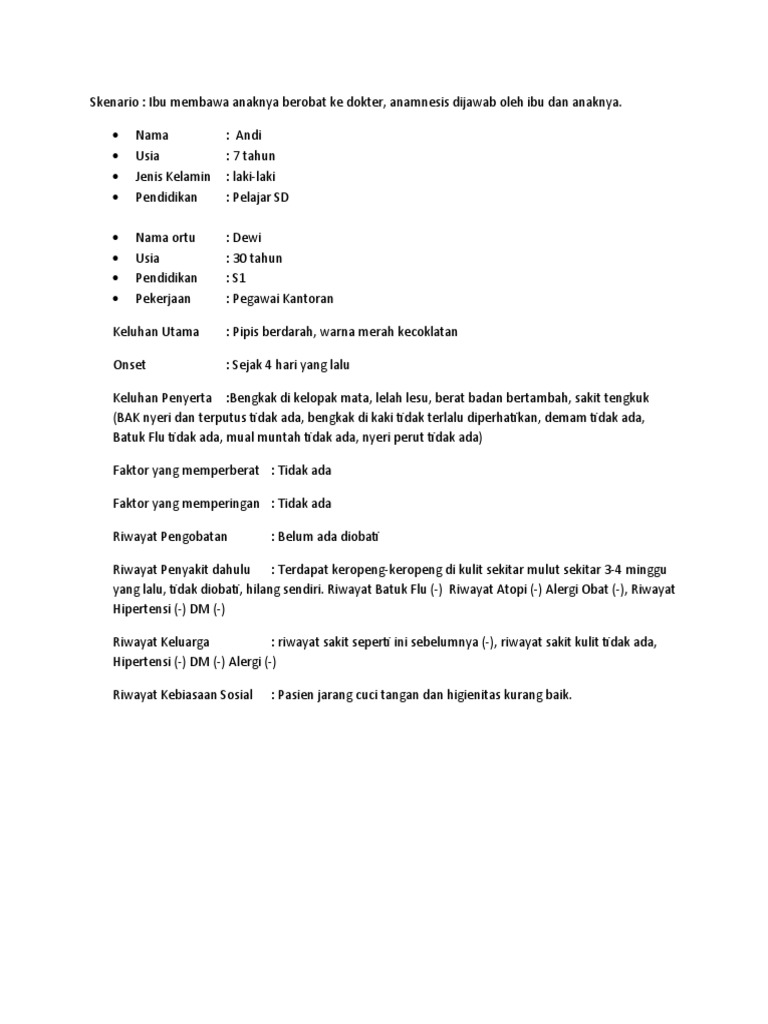 Skenario : Ibu membawa anaknya berobat ke dokter, anamnesis dijawab oleh ibu dan anaknya.