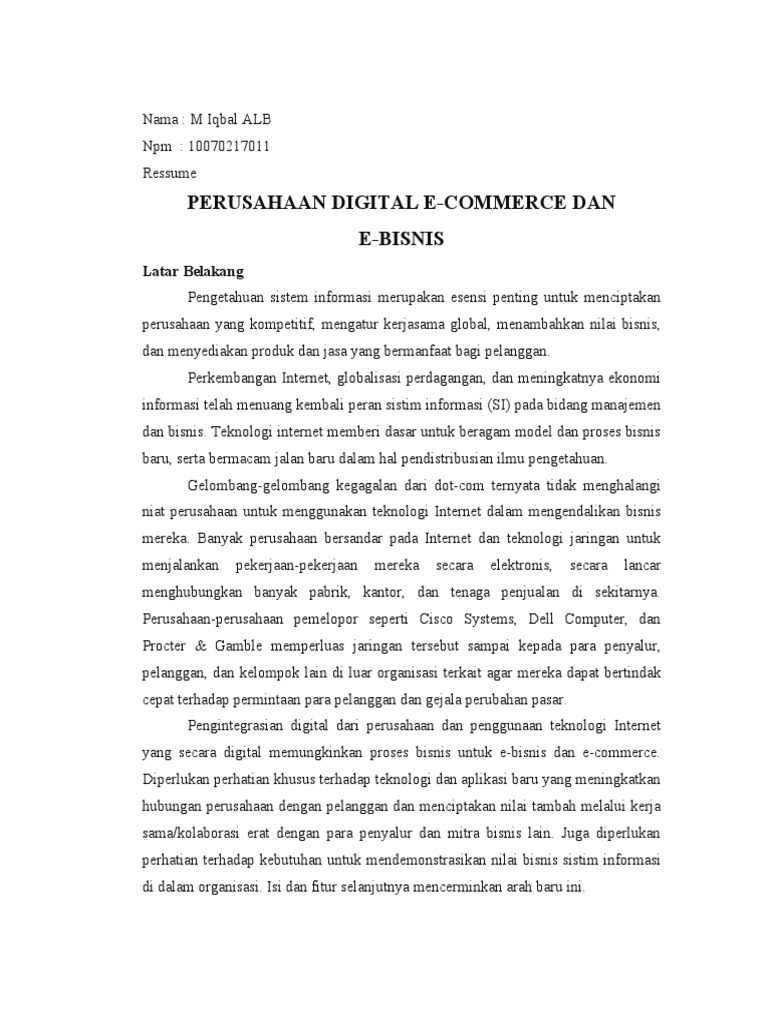 yang secara digital memungkinkan proses bisnis untuk e-bisnis dan e-commerce.