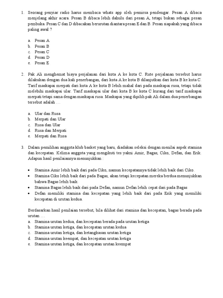 9. Edi selesai mengerjakan soal lebih cepat dibanding kayla. Emil selesai tidak lebih cepat dari Win