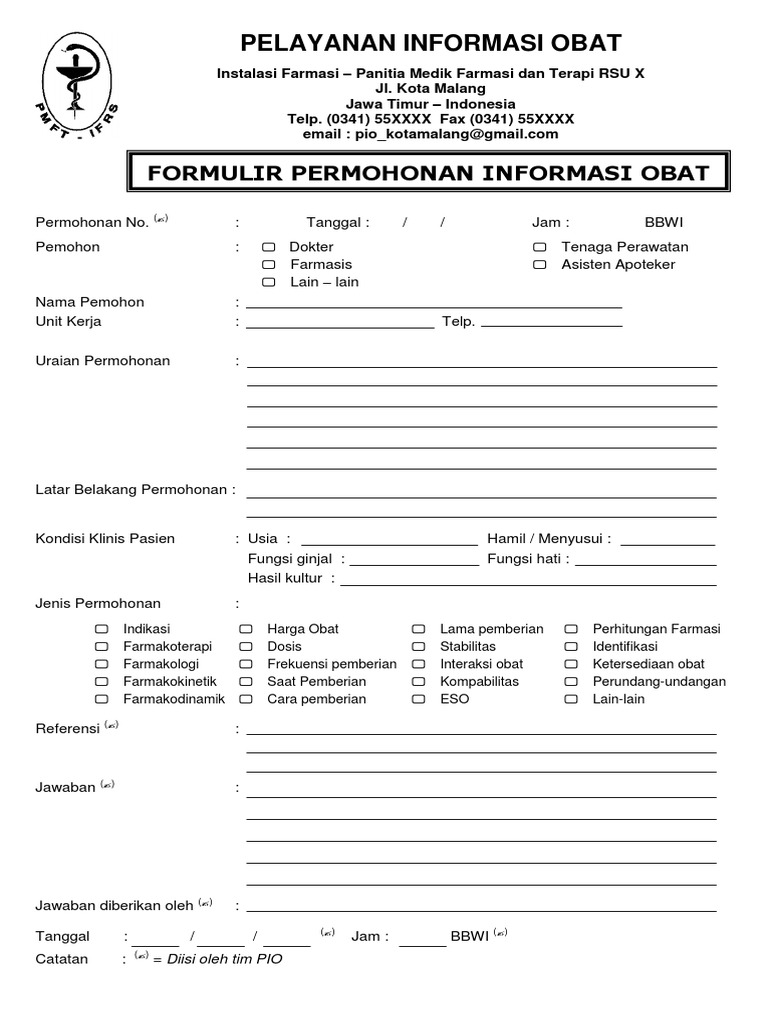 FORMULIR PERMOHONAN INFORMASI OBAT