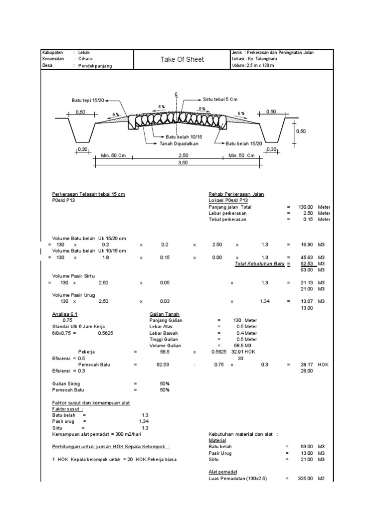 Panjang jalan Total = 130.00 Meter
