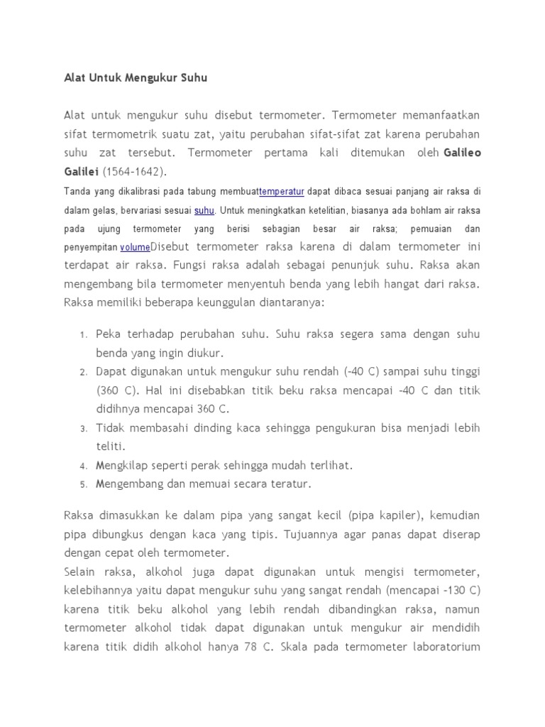 suhu zat tersebut. Termometer pertama kali ditemukan oleh Galileo
