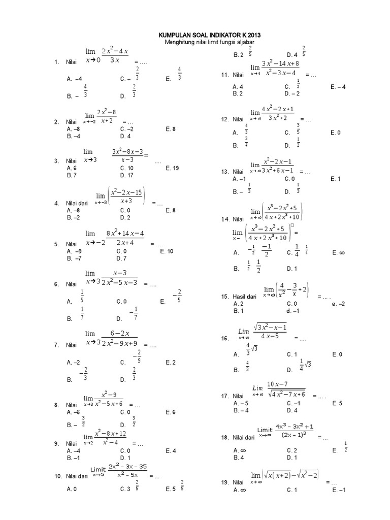 2 2 19. Nilai x → ∞ =…