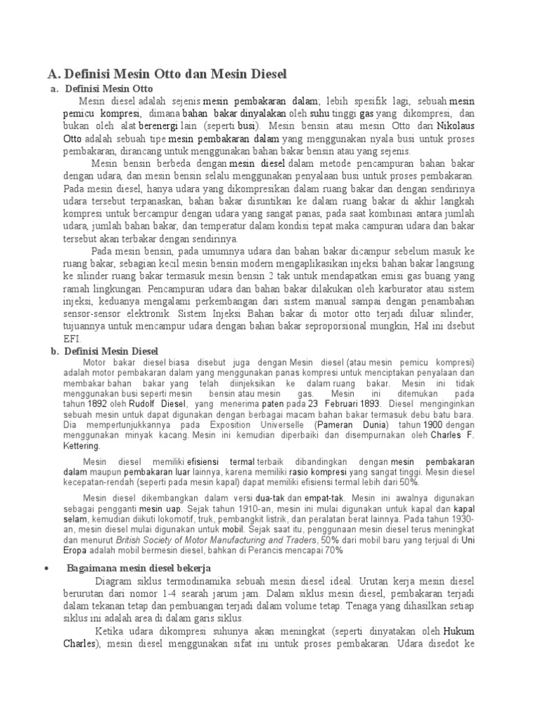 Definisi Mesin Otto dan Mesin Diesel