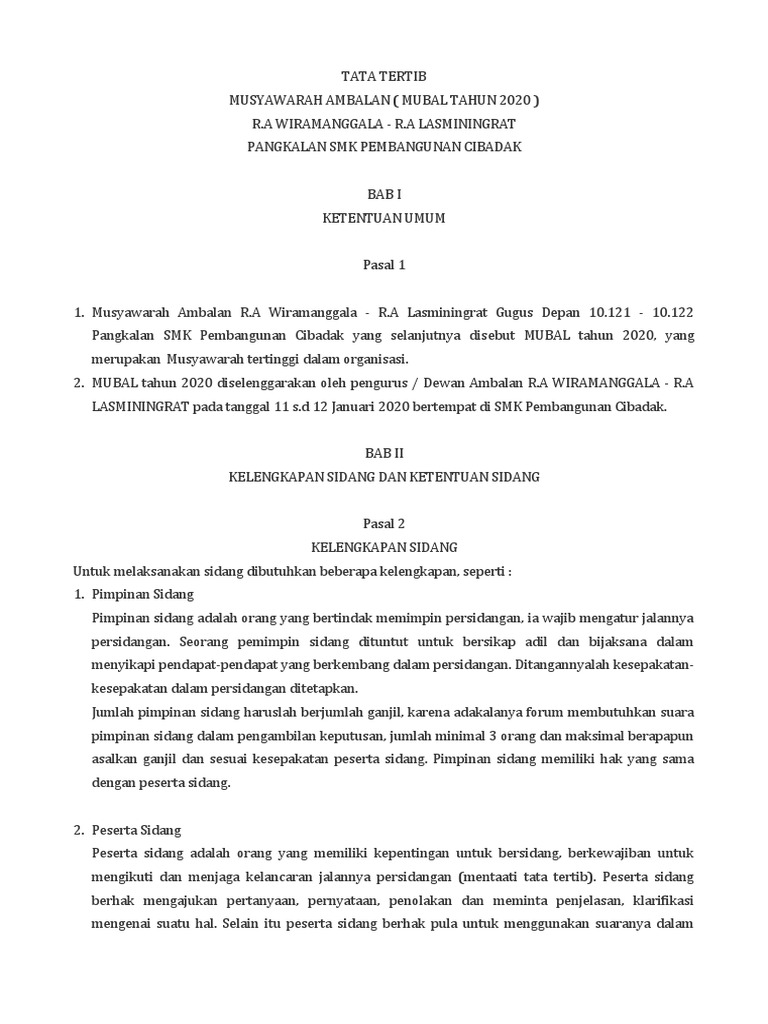 1. Setiap peserta dan peninjau berkewajiban mentaati tata tertib MUBAL TAHUN 2020