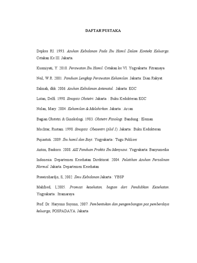 Kusmiyati, Y. 2010. Perawatan Ibu Hamil. Cetakan ke VI. Yogyakarta: Fitramaya